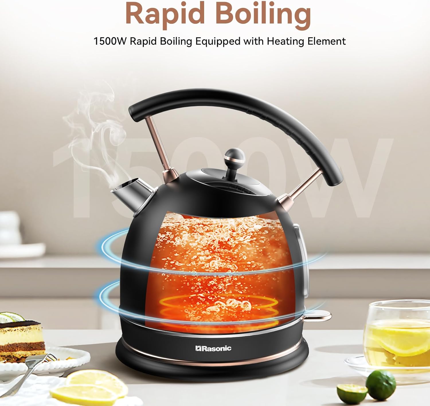 - [Cordless and Dome Design] Rasonic Retro Black Electric Kettle is easy to use and carry with its cordless and stylish dome design, the 360-degree rotational base also makes it the ideal for both left and right-handed users.